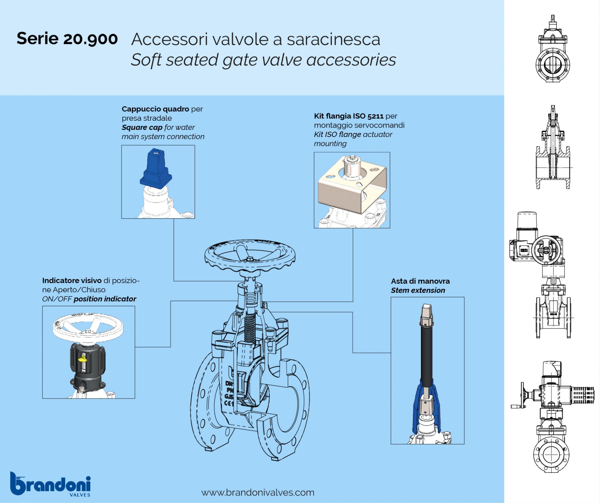 Accessori valvole a saracinesca a cuneo gommato serie 20.900: