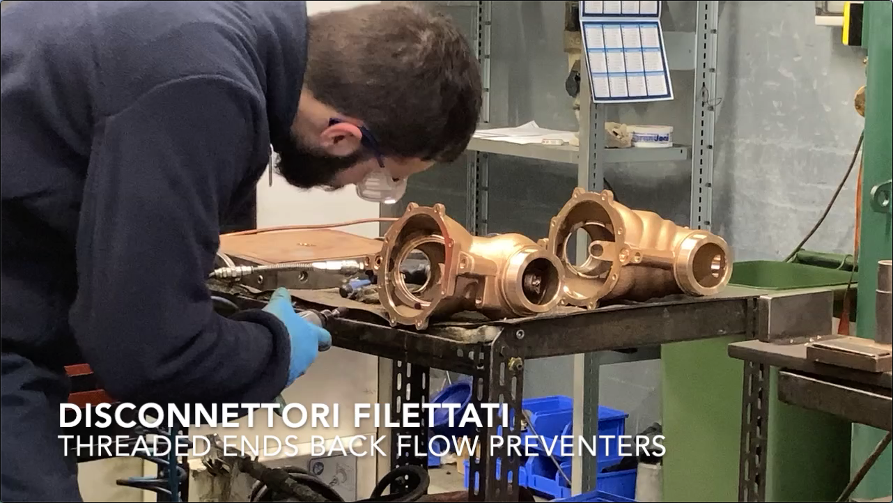 The body of the ECO3T series, threaded end DN50 backflow preventer, is being worked on.