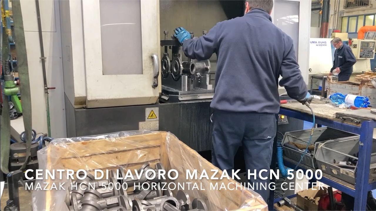 It is a double pallet horizontal machining center: the machinist loads/unloads the piece on the first pallet while another piece is being processed on the second pallet.