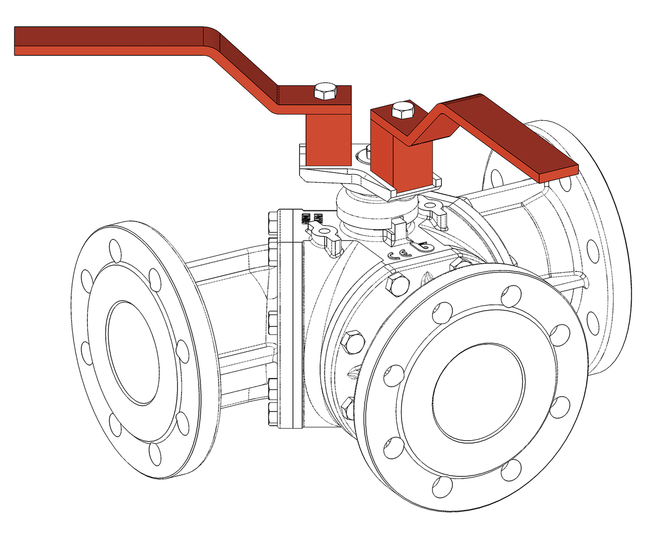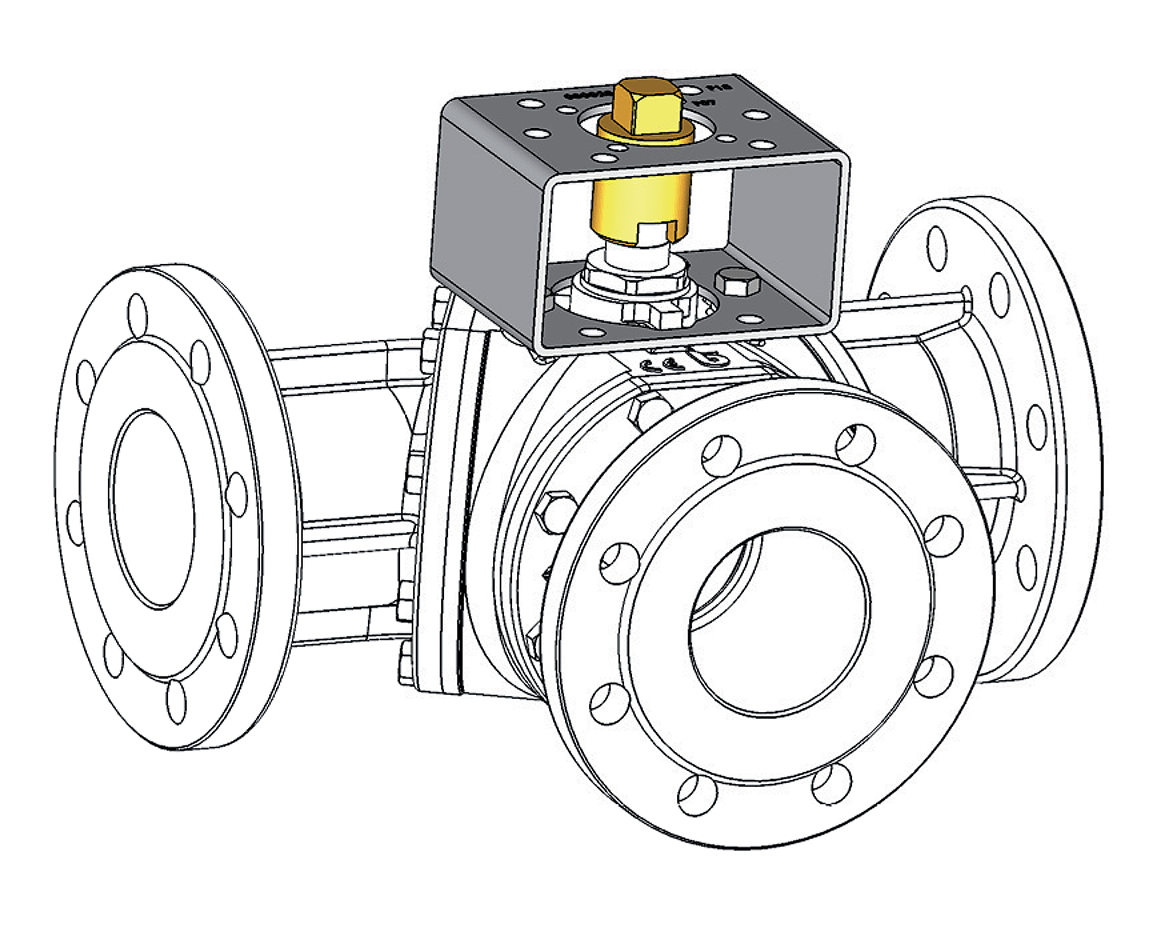 Three-way diverter flanged cast iron ball valve